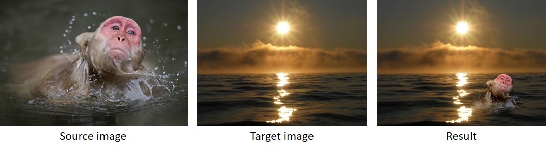 Reconstructed images from second-order derivatives and seamlessly blending image patches with Poisson blending.