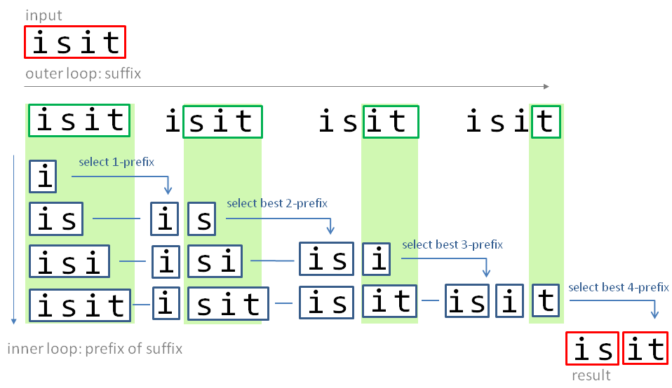 Automatically segment English input that does not have word boundaries into the most plausible sequence of words with N-gram.